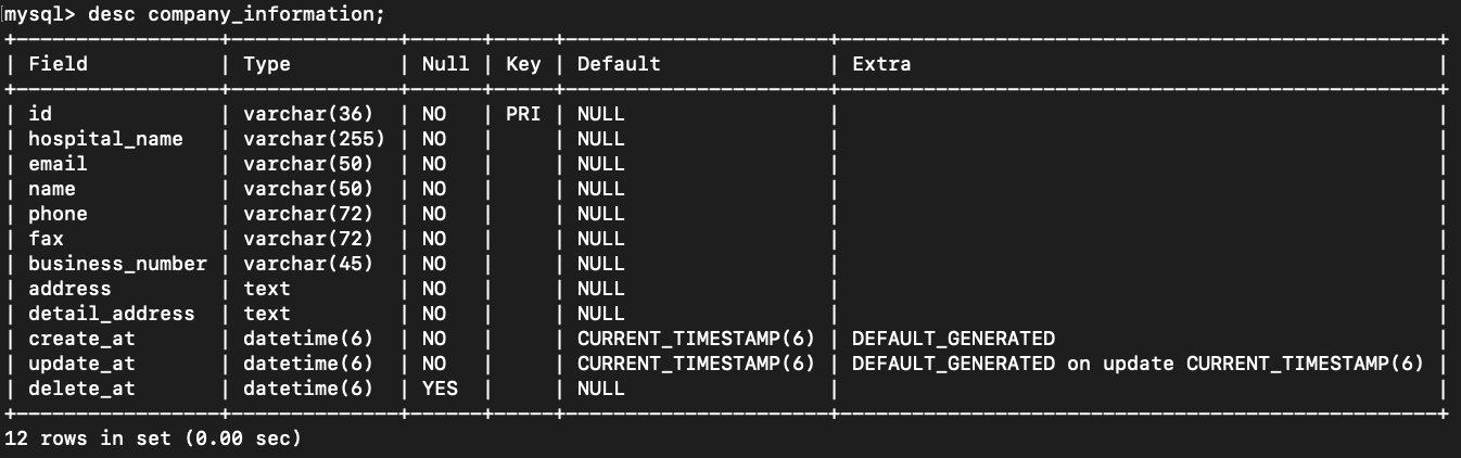 User Entity는 특정 회사에 소속되기 때문에 @JoinColumn 데코레이터를 사용해 CompanyInformation에 외례키를 갖습니다