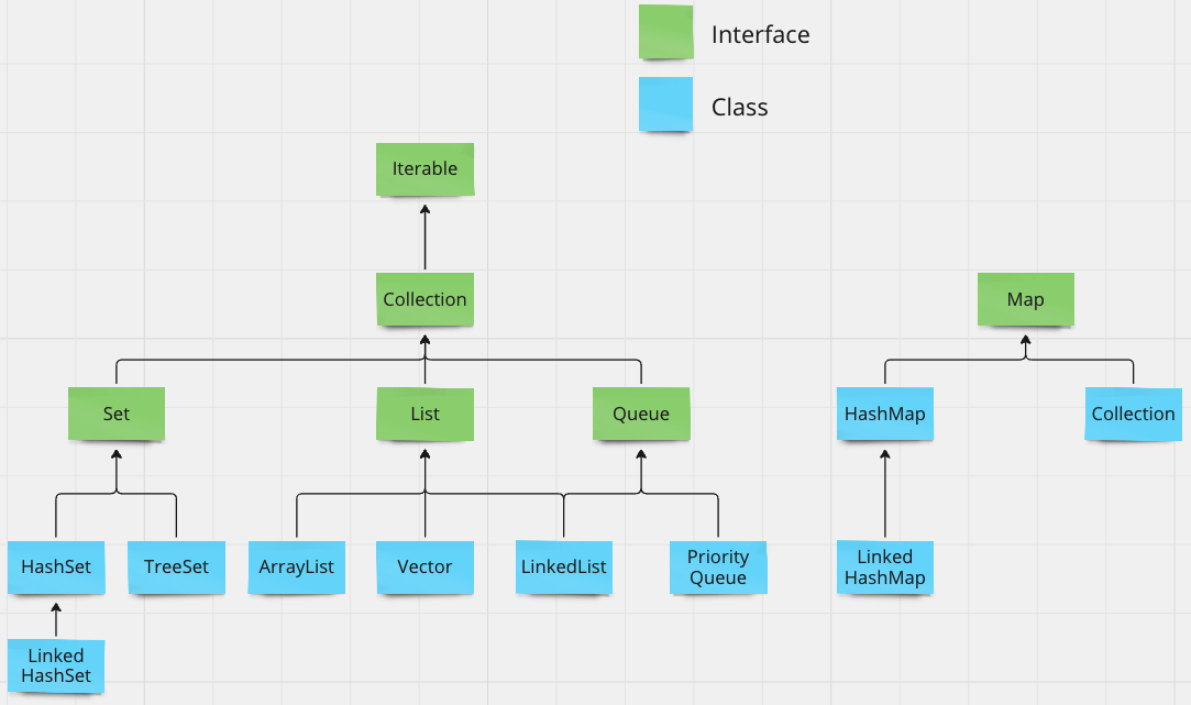 Java에서는 List와 Set, Queue는 Collection이라는 인터페이스를 구현하고 있고, Map은 따로 속해 있습니다.