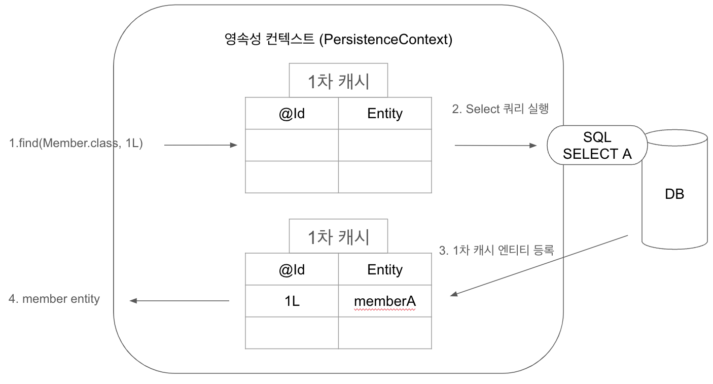 JPA 영속성 컨텍스트 안에는 1차 캐시라는 개념이 존재합니다.