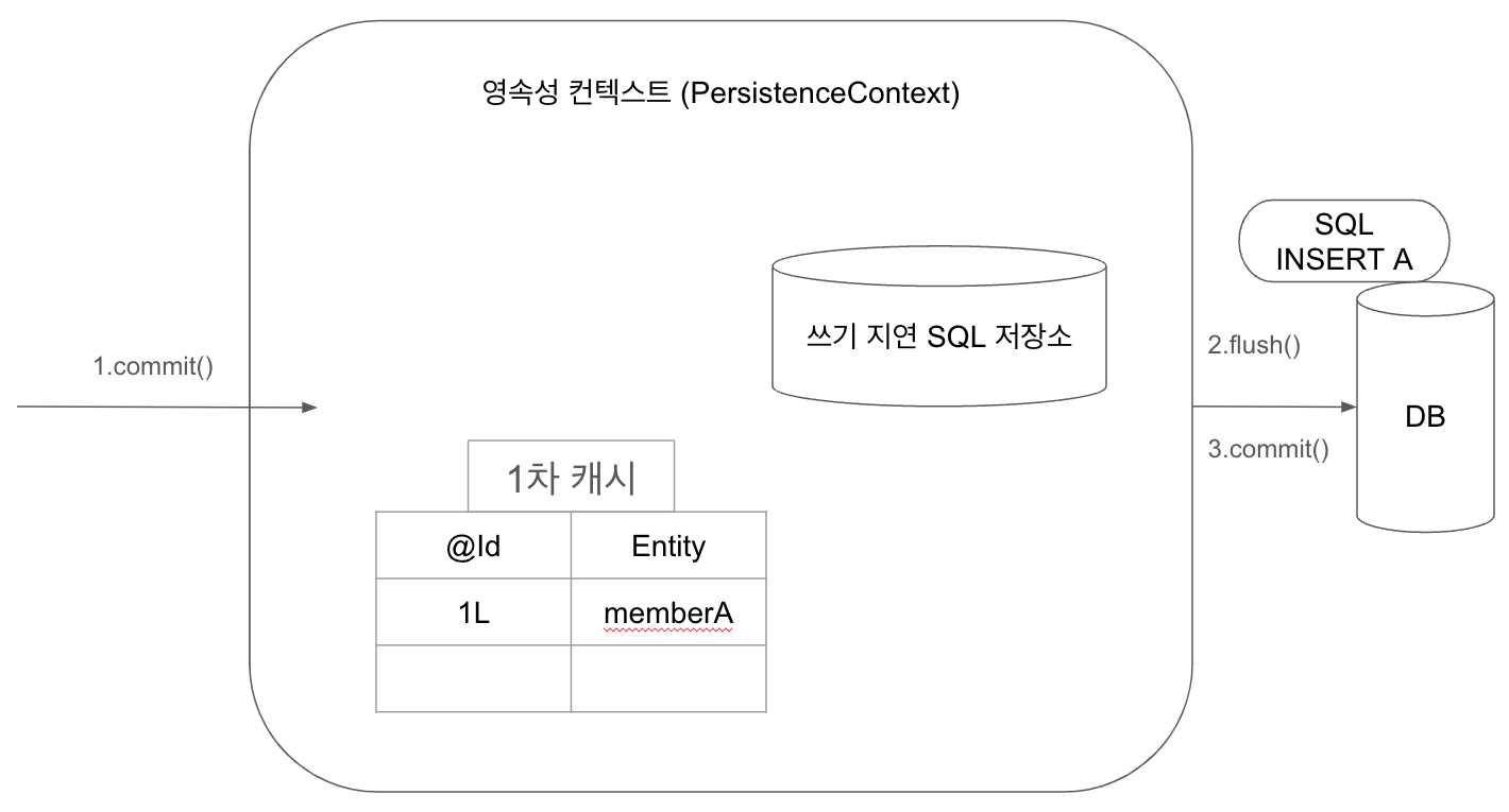 그런 다음 실제 commit() 또는 flush() 메서드를 호출하면 그때 DB에 쿼리 구문이 실행됩니다.