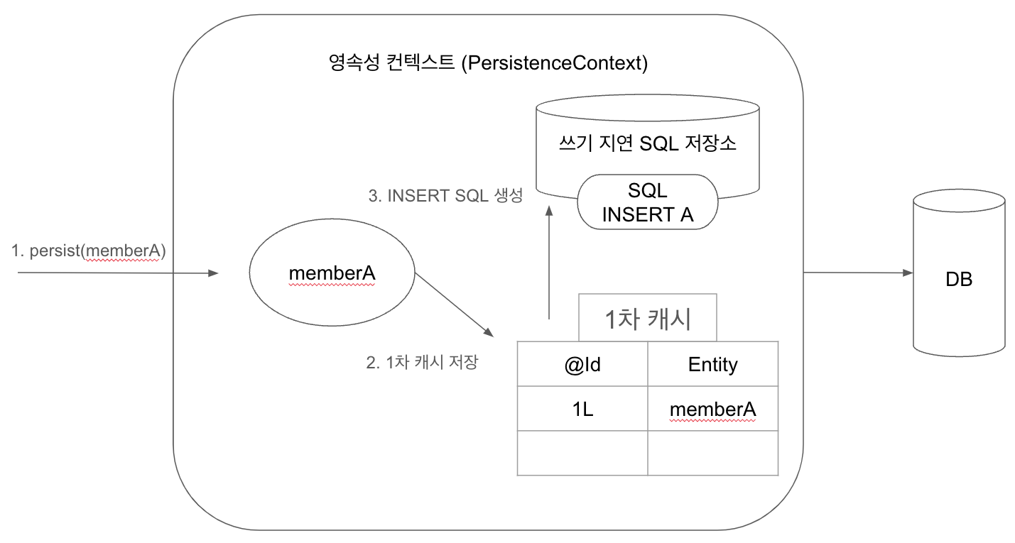 1차 캐시, 쓰기 저장소, 변경 감지에 대한 개념에 대해서도 같이 설명하겠습니다.