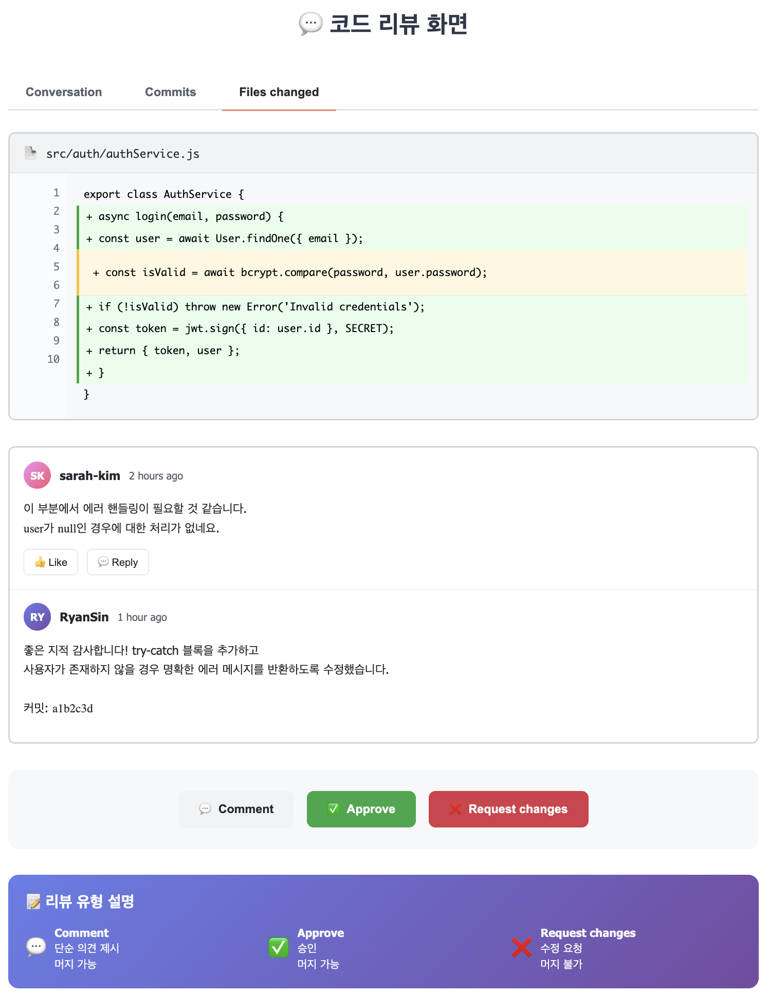 # - 리뷰어: 팀 리더, 백엔드 개발자