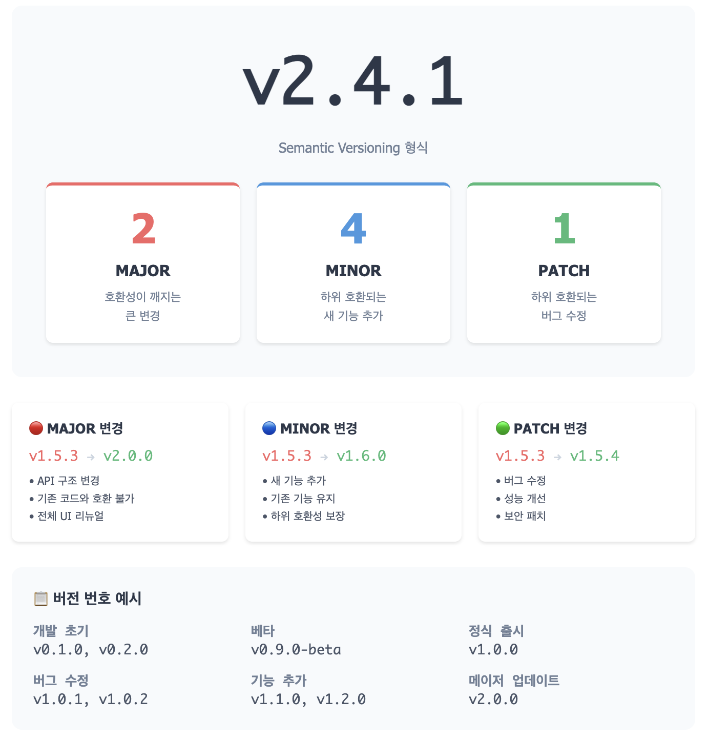 | 예시 | main, develop | v1.0.0, v2.0.0 |
