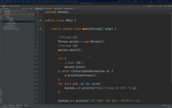 Thread Join 메서드는 해당 스레드가 모든 일을 끝낼 동안 다른 스래드가 기다려줍니다. 바로 한번 확인해보시죠!!