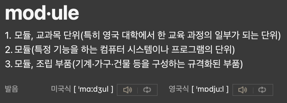 모듈이란 무엇일까요? 사전에서 소개하는 단어 뜻은 아래와 같습니다.