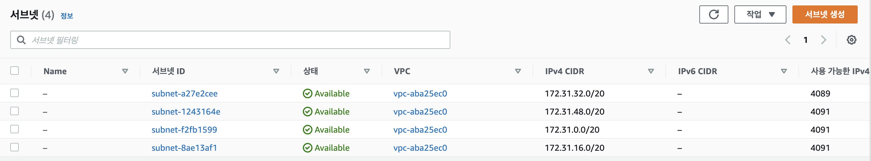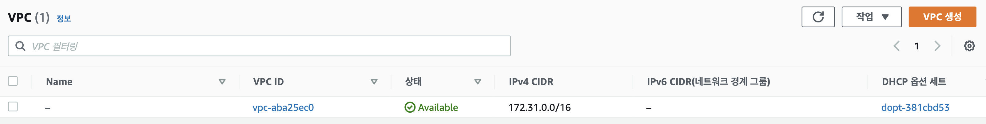 우리는 VPC를 만들지 않았지만 계정을 생성할 때 기본적으로 생성되는 기본 VPC가 생성되어 있습니다.