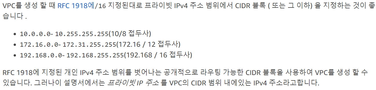 여기서 우리는 VPC IPv4 CIDR 영역을 이해하고 서브넷을 설정해야 합니다.