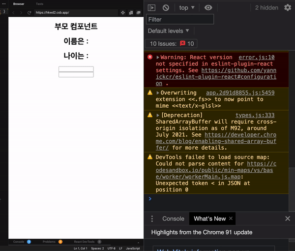 결과를 화면을 보면 state 값이 변경되면, 부모와 자식 Component 모두 재 렌더링 되는 걸 알 수 있습니다.